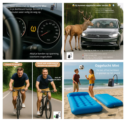 Opgelucht Mini | Draagbare elektrische pomp voor Fiets, Auto, Luchtbed, of bal.